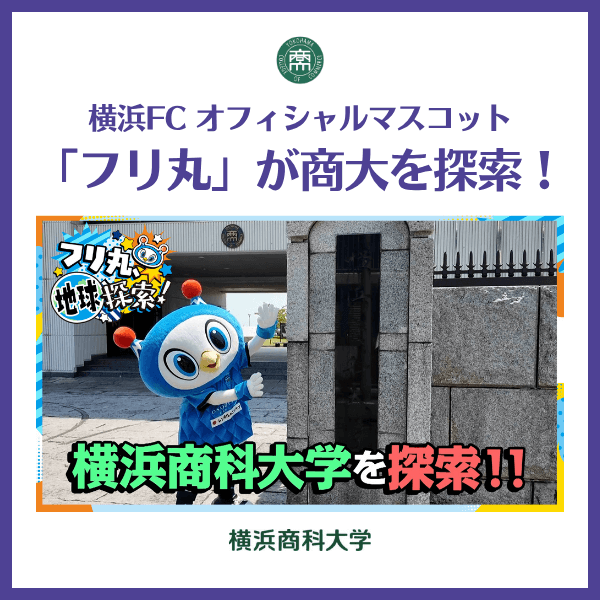 横浜FCオフィシャルマスコット「フリ丸」が商大を訪問!映像企画『フリ丸、地球探索』公開!
