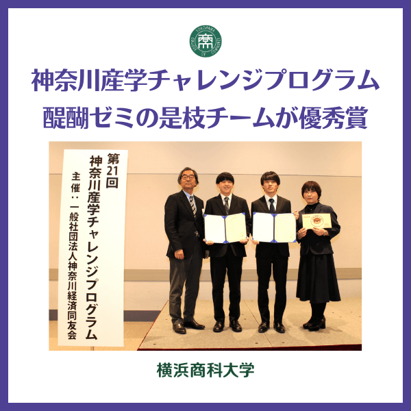 第21回神奈川産学チャレンジプログラムにおいて、醍醐ゼミの是枝チームが優秀賞を受賞しました。