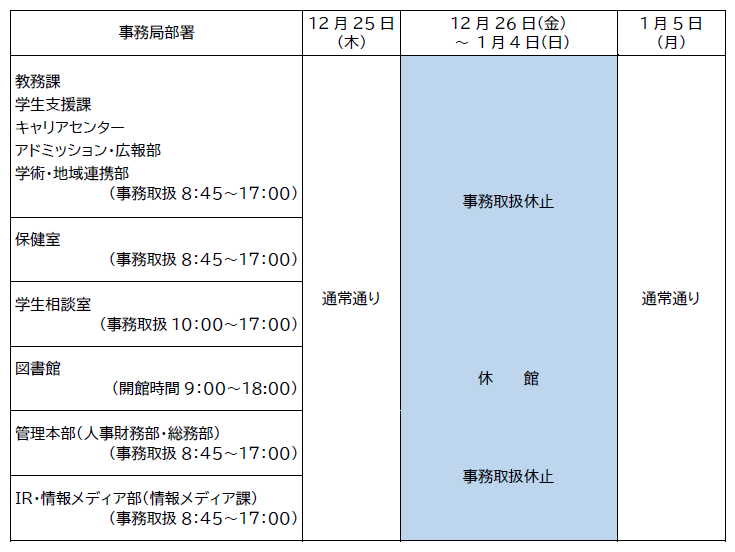 2025年12月25日(木)16時45分から2026年1月5日(月)8時45分まで