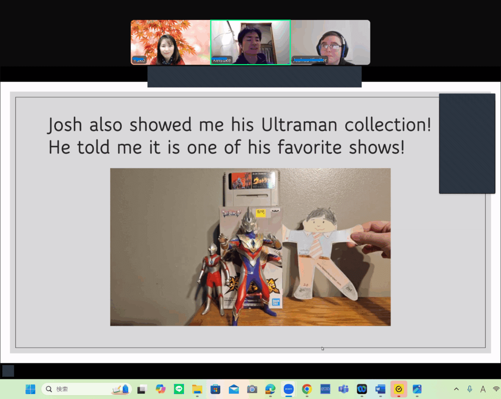 学生は、手作りの紙媒体の人形(Stanley人形)と自己紹介や現地で希望する体験を記した手紙を郵送で送り合い、自分の代わりに人形がホームステイを体験します。これと並行し、Zoomによるオンライン交流(同期型交流)を併用し、受け入れ側の学生と共に現地の体験を互いに披露しながら交流を深めました。