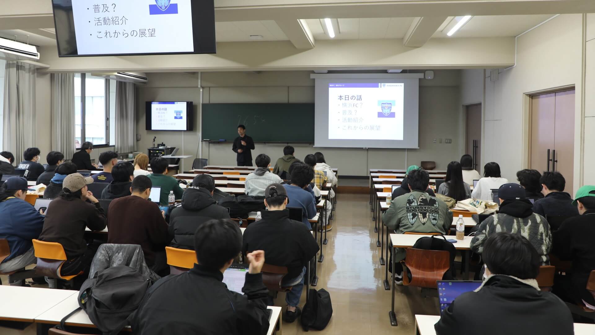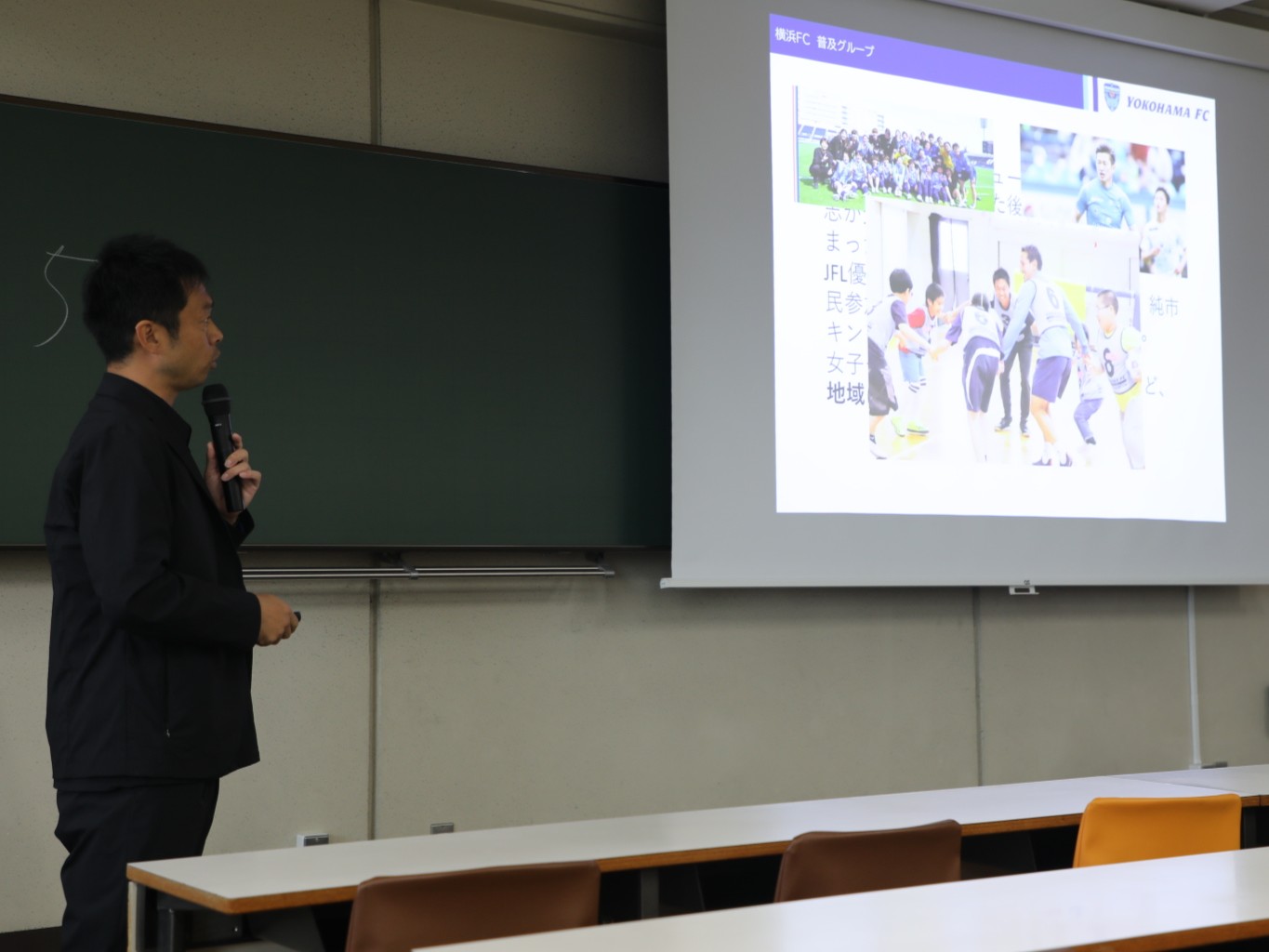 「横浜のプロスポーツビジネス」の授業で 横浜FC 鯨井健太氏 が特別講師