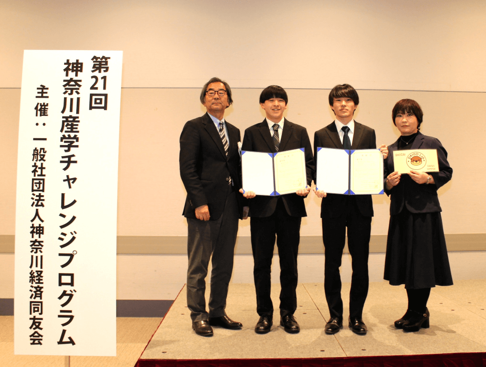 12月16日(火)一般社団法人神奈川経済同友会が主催する「第21回神奈川産学チャレンジプログラム」の表彰式が、パシフィコ横浜アネックスホールにて開催されました。本学では、醍醐ゼミの是枝チームが優秀賞を受賞、表彰されました。