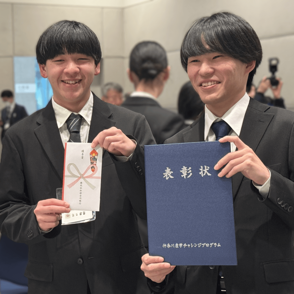 この度は、このような貴重な機会をいただきチームを代表して深く感謝申し上げます。プロジェクト始動から今日に至るまで紆余曲折はございましたが、神奈川経済同友会をはじめ、神奈川銀行の方々や大学の先生方、職員の皆様にお力添えいただいたおかげで優秀賞という結果で終えることができました。短期間ではありましたが、このプロジェクトを通じて社会人に求められる様々な力を身につけ、自分自身の成長を実感することができましたので、今後のキャリアにも活かしていきたいと思います。