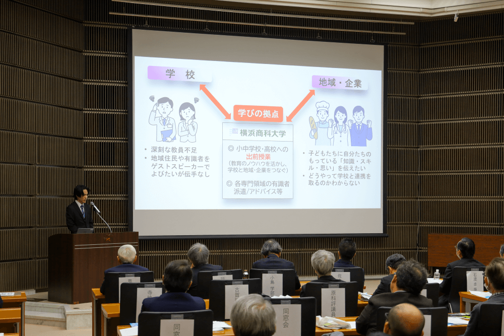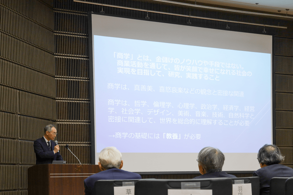 横浜商科大学は創立60周年を記念し、「商学は、人の世の幸いのためにある」をテーマとした特別講演会を開催しました。本学が掲げる「安んじて事を托さるる人となれ」という建学の精神や、