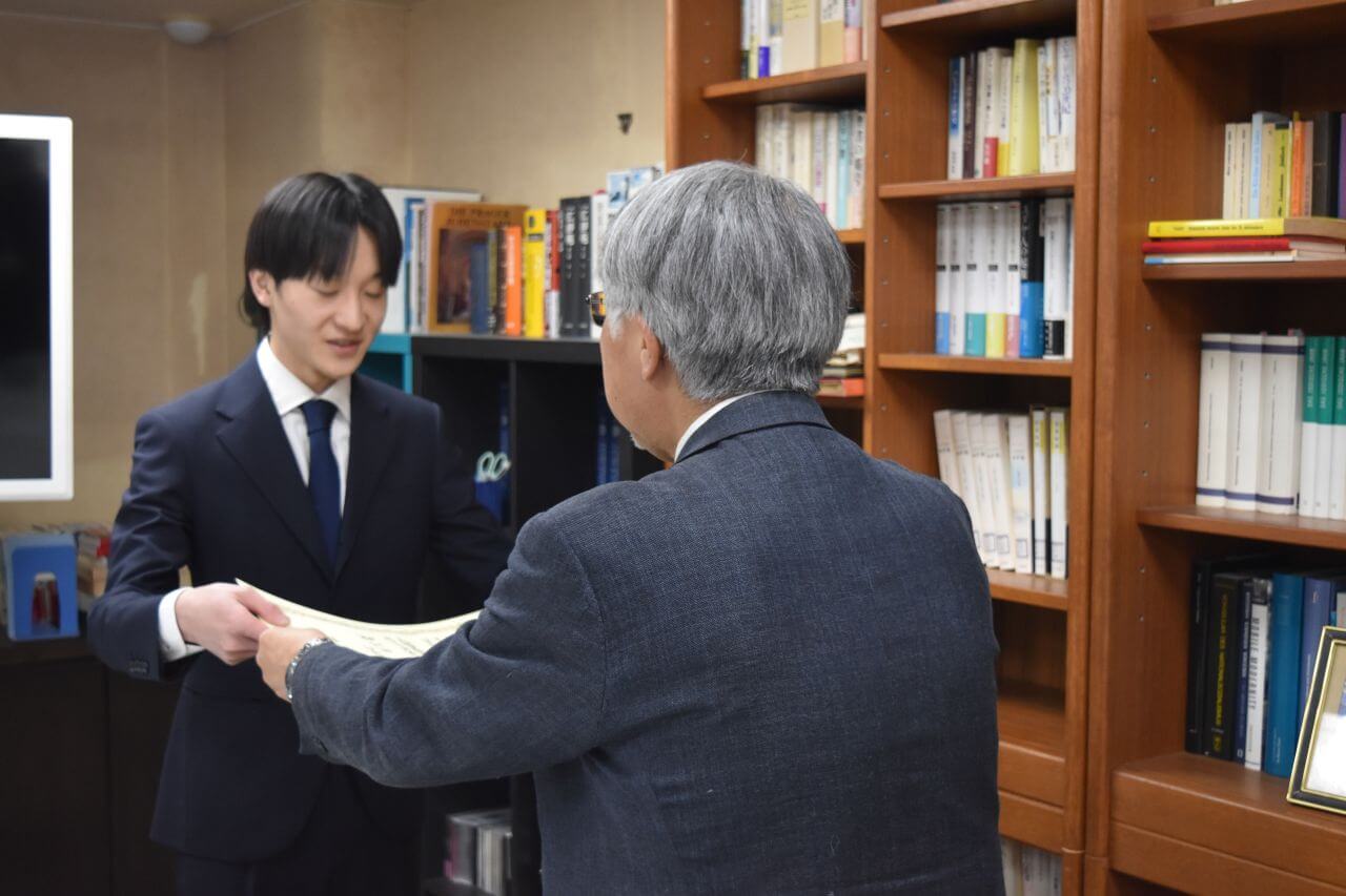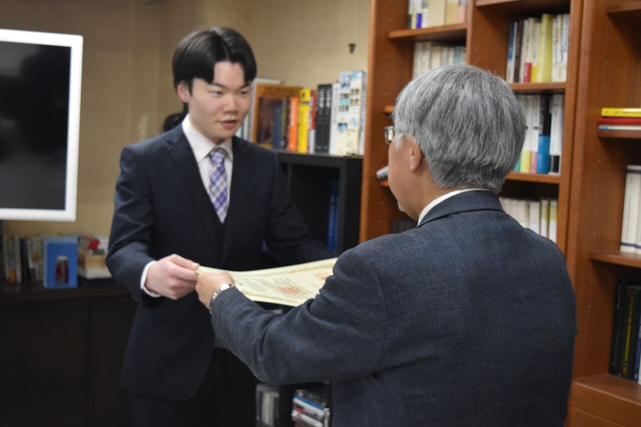 2026年1月28日(水)に、学長室で特待生規程における資格特待生の認定式を執り行いました。
