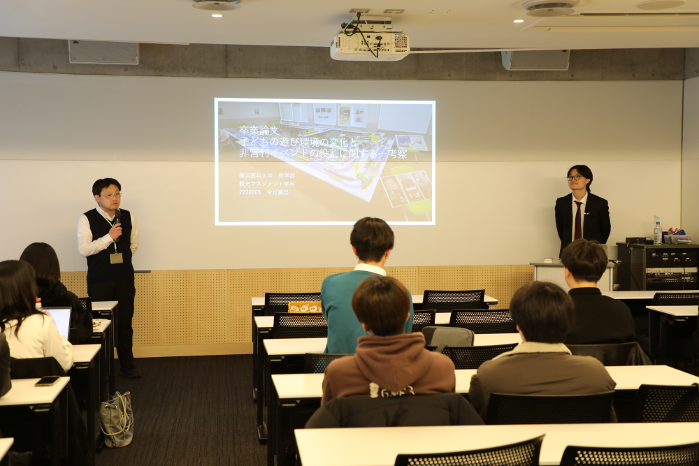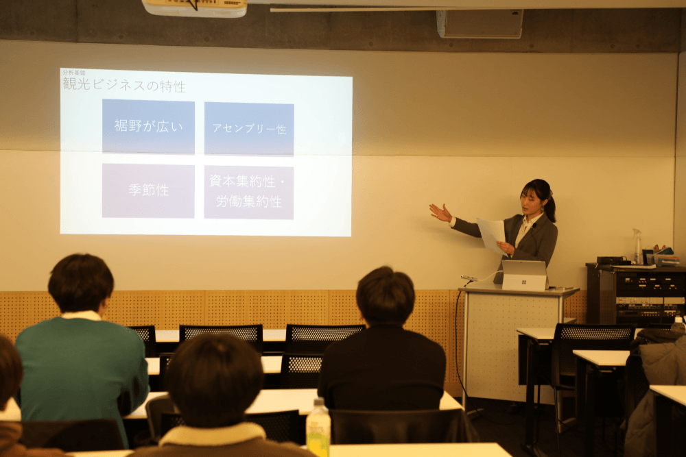 2026年1月30日、観光マネジメント学科の竹田教授が指導するゼミナールにて、4年次生による卒業論文・卒業レポートの発表会が開催されました 。