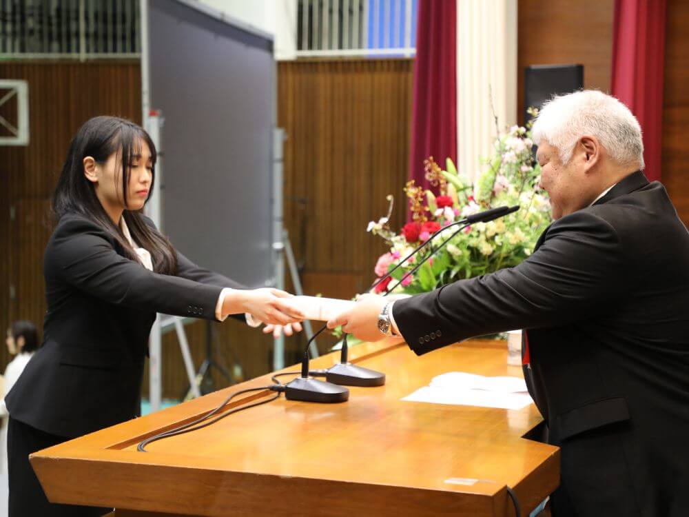 桜咲く4月3日(金)、本学体育館にて令和8年度入学式が行われました。今年度は389名の学部生と6名の大学院生、合わせて395名の新しい仲間を迎えました。