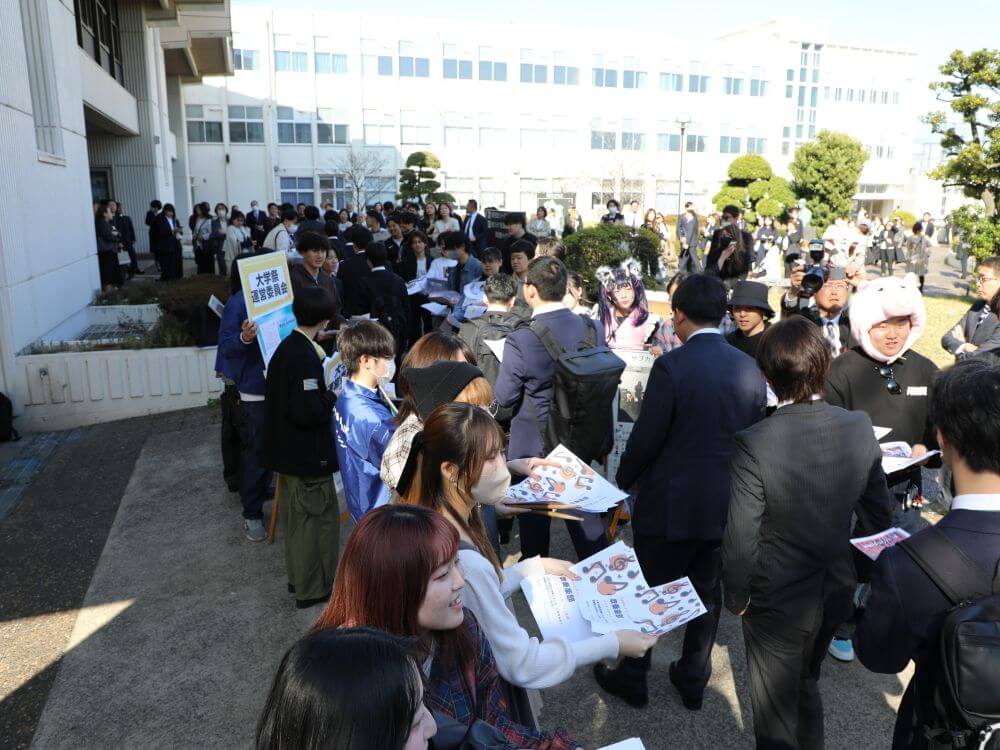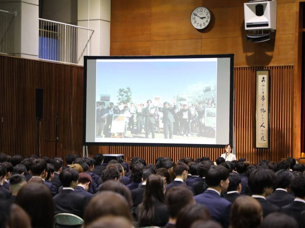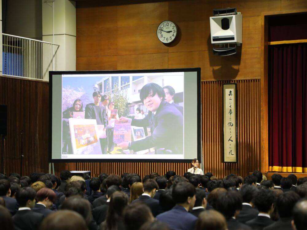 「歓迎の部」では、日頃より本学を支えてくださる地域・企業の皆様、社会で活躍する卒業生、そして先輩学生からの熱い思いが込められたメッセージビデオを上映。