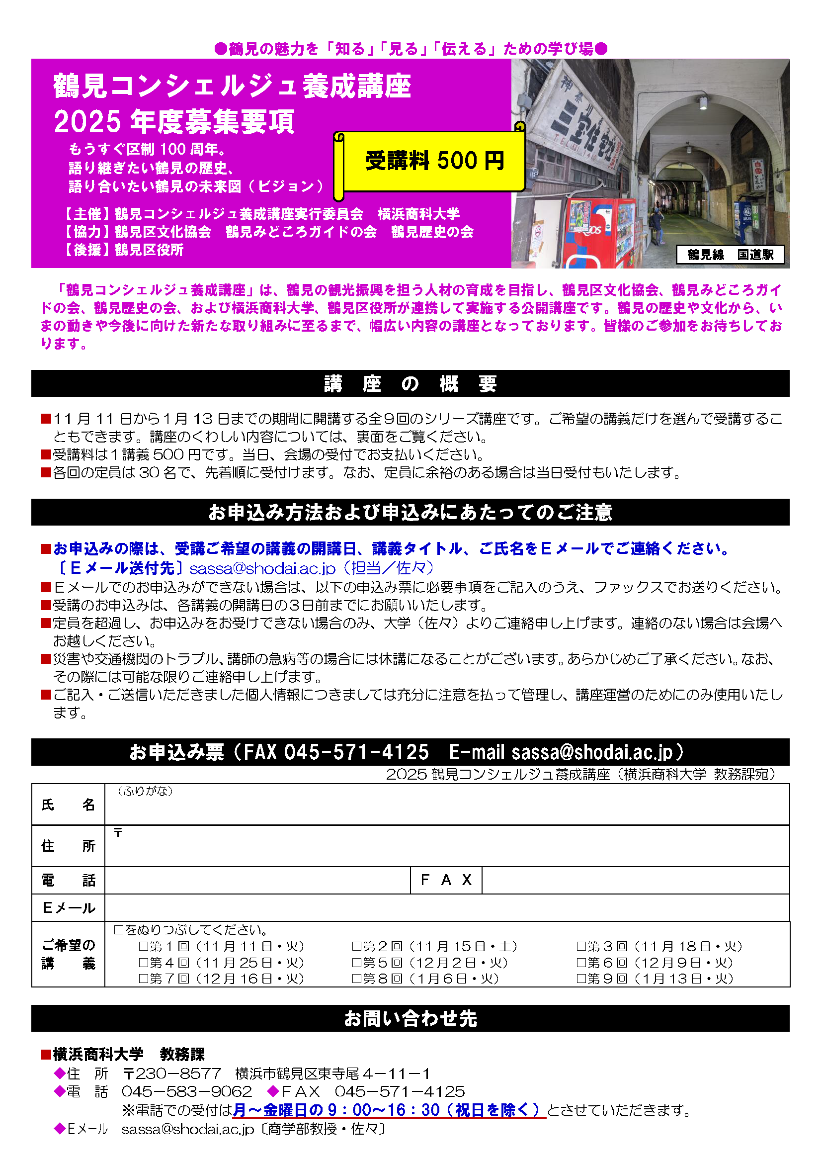〔主催〕鶴見コンシェルジュ養成講座実行委員会/横浜商科大学
