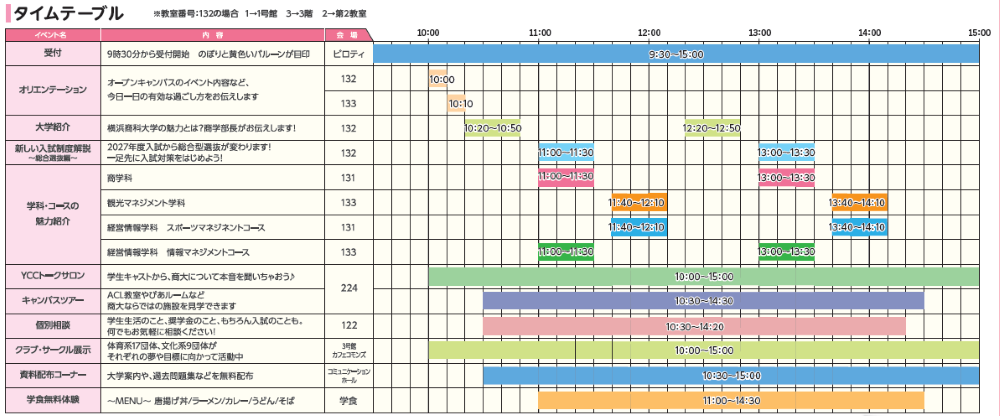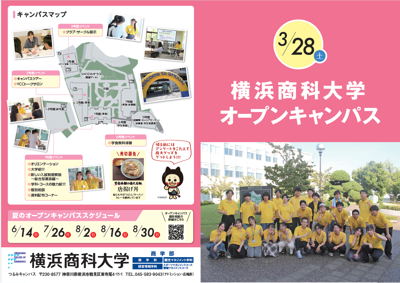 イベントEVENT イベントメニュー すべて お知らせ 学術・研究 講義・ゼミレポート 学生の活動 キャリアサポート 受験生の方へ 資料請求 デジタルパンフレット2026年度版 閉じる HOME YCC Events 03/28オープンキャンパス開催案内 03/28オープンキャンパス開催案内 イベントは終了しました。 開催日 2026.03.28 開催時間 10:00~15:00 場所 つるみキャンパス 予約フォーム イベント一覧に戻る
