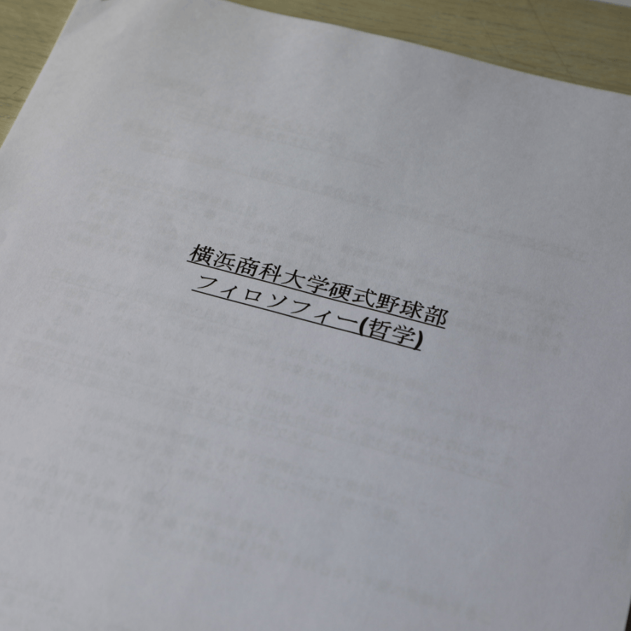 野本監督: チームの「哲学書(フィロソフィー)」をつくりました。そして学生一人ひとりに手渡しました。そこには「地域に貢献し、皆様に勇気と感動を与え、感謝を伝えられる野球部を目指す」という指針を記しています。